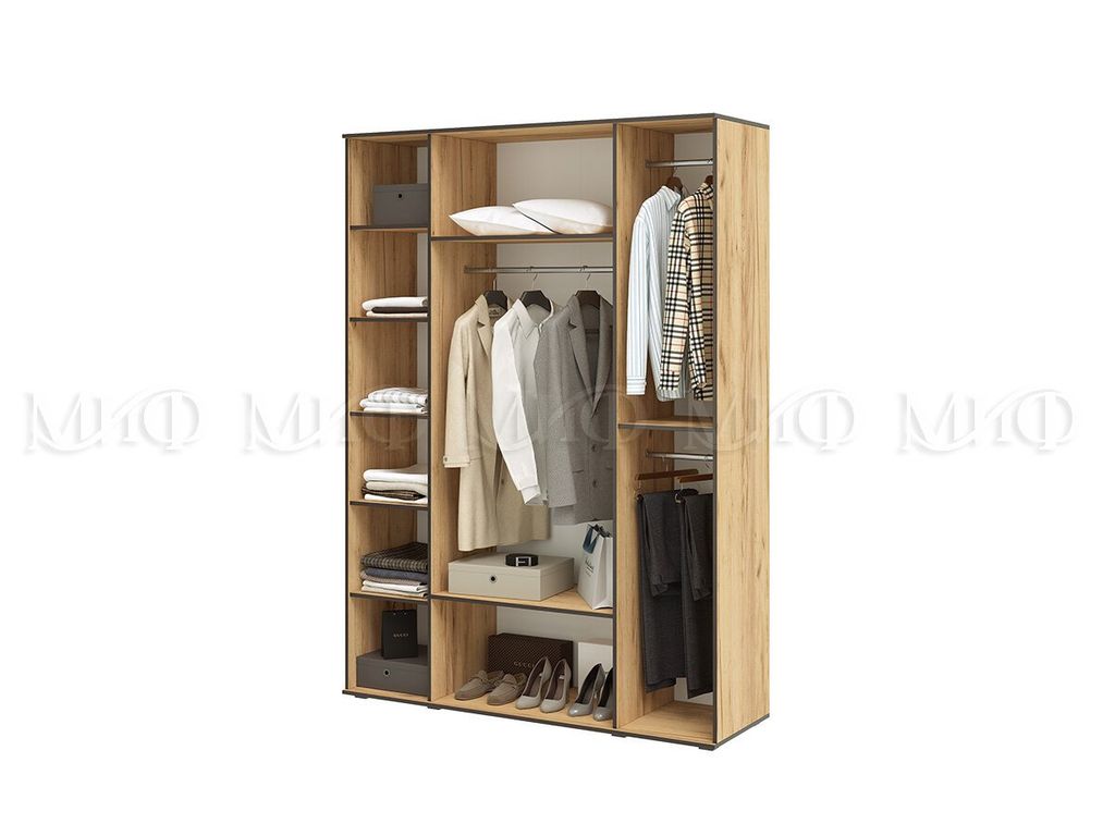 Четырехстворчатый шкаф Норд относится к одноименной модульной серии. Модель не имеет вычурного декора и лишних деталей, выполнена в сдержанном и лаконичном стиле, комплектация шкафа представляет собой несколько полок для хранения вещей в сложенном виде, а также отделения с хромированными штангами для одежды на вешалках.