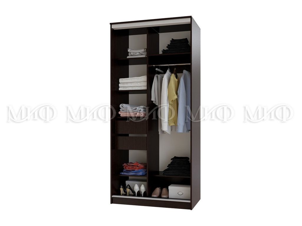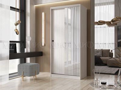 Непритязательный дизайн и простота форм шкафа-купе "Альянс" позволяют гармонично вписать его в любой интерьер. Одна из створок шкафа зеркальная, что добавляет помещению света и зрительно расширяет пространство. Шкаф разделен на две секции, одна из которых комплектуется полками, а вторая - штангой для вешалок, антресольной и нижней полками.